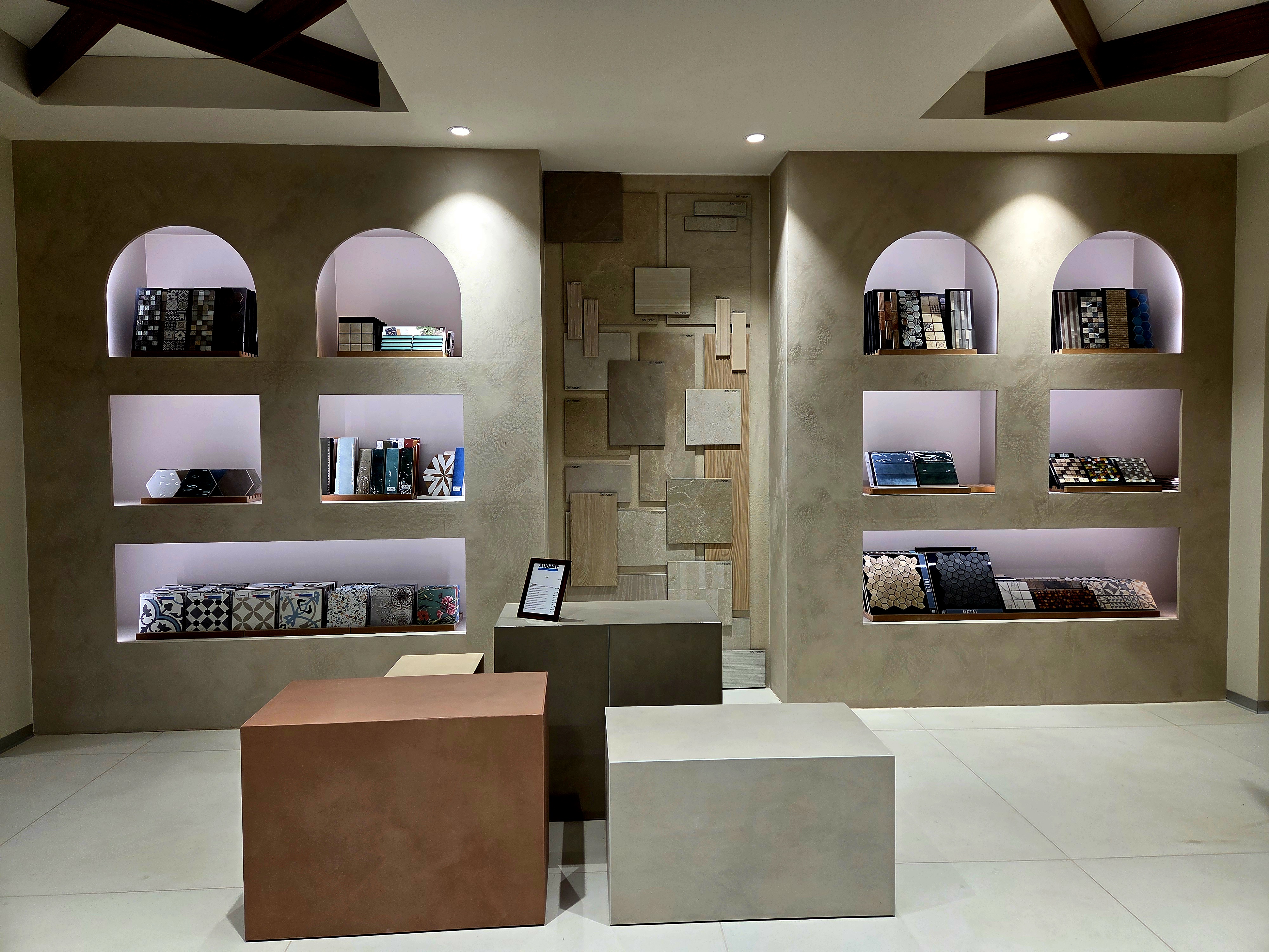 L’espace carrelage, traité avec notre partenaire INSCA sublimé par sa bibliothèque déco, invite à la découverte des matières et des savoir-faire, dans une mise en scène sobre et inspirante.